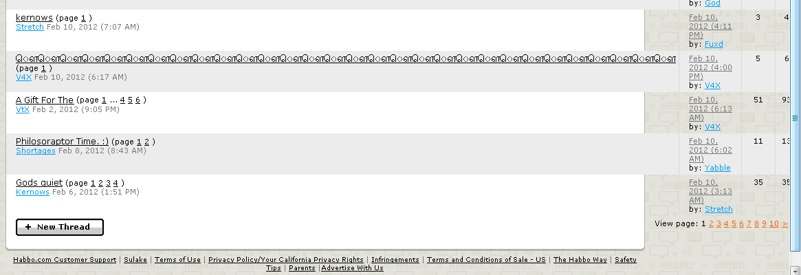 “Wider page” – Only a small minority of users know how to do this ‘trick’. A certain character/symbol can be typed into a thread title which makes the entire forum page wider and thus messes up the text on the page.A good example of this is from the (small) screenshot on the left, but if you would like to see a full size version go to www.habbo.com/groups/fch/discussions.