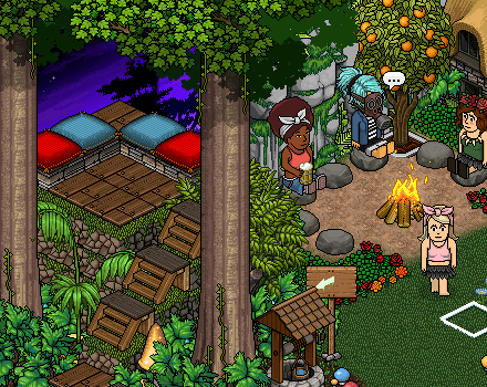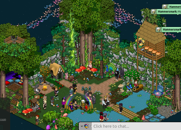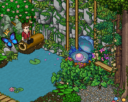 I have yet to come across a room on Habbo that makes me feel so summery. The use of colour injected into the green scenery is just beautiful and there is a stunning river running through the room to cool things down a little. The seating alongside the river allows you to sit and chat to friends whilst admiring its beauty. I would be so tempted to dip my feet in! The room is called a ‘wonderland’ and this truly is a land of wonder for me- it would literally be the perfect place for the most awesome garden party ever. I can almost hear the sounds of the insects buzzing away in the background and the soft ripples of the water!