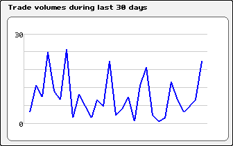 This next image shows the trade volumes each day for the last 30 days. Although it doesnt serve the same analytical purpose as the other graphs and data, this still is very useful and important, as it allows you to see if an item does indeed sell well or not, and whether or not it has been selling in large quantities at peak prices, which is generally
