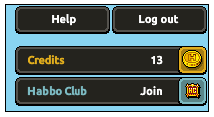 The new counter features the usual amount of HC days left and how many credits you have in your purse but it now is a new, more modern look. The counter has a new, grey design with four bars to display credits, HC days, logout, and help. With help and logout in bright. white letters, credits in a darker gold and Habbo Club in a darker blue.